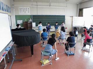 スタートやテンポは自分たちで決め、それに合わせて音楽の先生が伴奏をしてくれます。演奏する子も聞いている子もみんな楽しそうです。