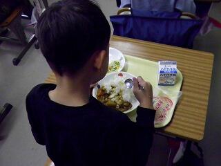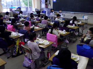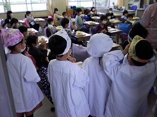 「いただきます」をして、みんなおいしそうに給食を食べていました。
