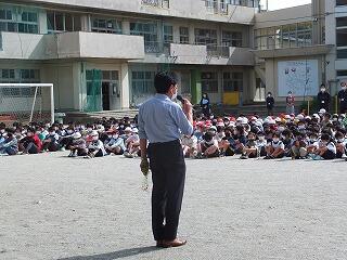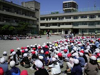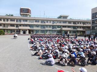 今日は市川市道路交通部の方々に来ていただいて、1年生と3年生に交通安全教室を開いていただきました。