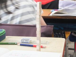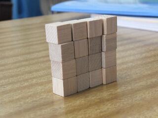 子どもたちは、小さな積み木を積み重ねながら「16平方センチメートルとは?」「体積とは?」を理解していきます。