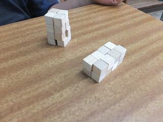 子どもたちは、1センチ×1センチ×1センチの積み木をいろいろな形に並べます。