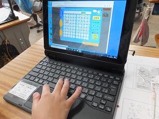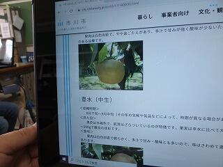 そこで、出番となったのが「タブレットコンピュータ」です。今年度は、3年生にも配付され使い方を学んでいます。この日は、インターネットで市川で作られている梨の種類を調べていました。