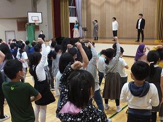 今日は、中山小学校に新国立劇場合唱の方が来てワークショップを行ってくれました。