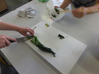 作業工程は簡単ですが、初めてのガスコンロや包丁に子供たちの顔は真剣そのものでした。