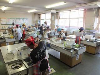 コロナ感染予防で、今年も1テーブル2人ずつの少人数での調理実習です。