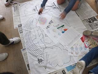 今年も5,6年生が、USDに向けて学級旗を作成しています。