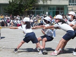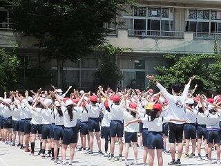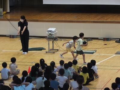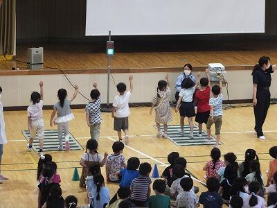次は、全身を使ったじゃんけんです。みんな体を大きく動かしながら、代表委員と勝ち抜きじゃんけんを楽しみました。
