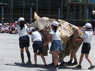 2年生は「猛獣狩りに行こうよ」のゲームで楽しみながらコミュニケーション力を育てていました。