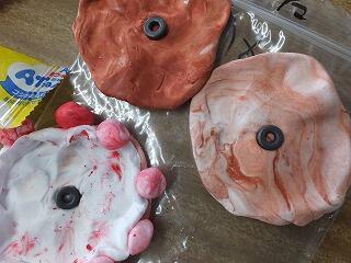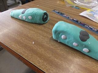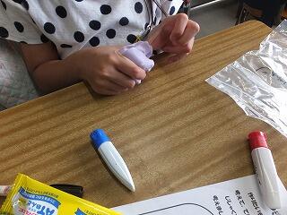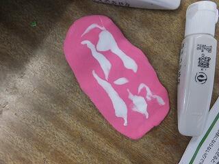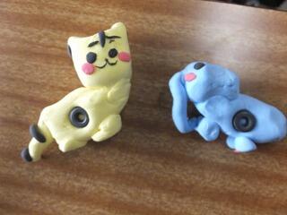 自分で色を付けた年度で小さなマスコットを作ります。マスコットの中には小さな磁石を入れます。こうすることで、マスコットとマスコットがくっつきます。磁石をどんな風に利用するか、工夫のしどころです。