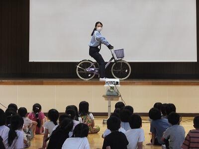 3年生は、自転車教室です。自転車の点検や安全に自転車に乗るための注意点を教えていただきました。