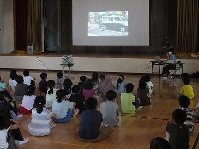 1年生は、歩き方教室です。歩き方のルールやマナーを教えていただいた後に、「とびだし」の実験やみんなで横断歩道を渡る練習をしました。