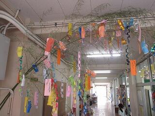 1年生、2年生は、クラスごとに笹飾りを作りました。