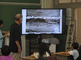子どもたちは、今の中山小学校との違いに関心を持ちながら聞いていました。