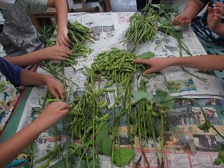 今日は給食に枝豆が出されました。この枝豆を茎からとってくれたのは、いずみ学級の子どもたちです。