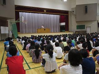 終業式では、「夏休みにいろいろなことにチャレンジしましょう」という校長先生からのお話や夏休み中の生活について生徒指導主任の先生からのお話がありました。