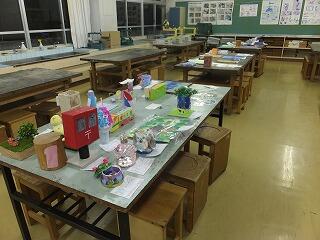 子どもたちの力作が、展示する特別教室に集められました。夏休み中に夢中になって取り組んだ作品、思い出がつまった作品、おうちの人と一緒に頑張った作品などたくさんの作品が展示されています。