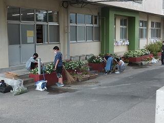 栽培委員会は、花壇の手入れやプランターの片づけに汗を流していました。