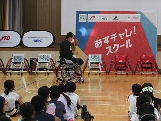 今回は、車いすバスケットボールのパラリンピアンの先生が中山小学校に来てくださいました。