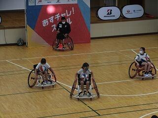 車いすバスケットや競技用の車いすについていろいろなことを教えてくださったり、車いすでのドリブル体験もさせてくださいました。