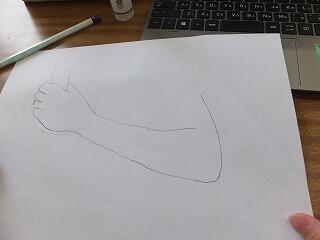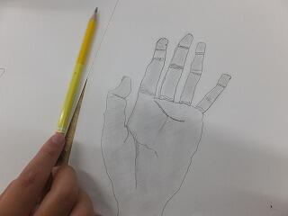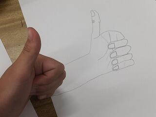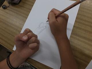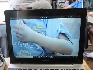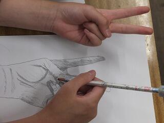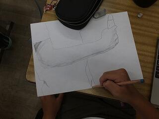 自分の腕をタブレットで撮影して、それを元に描いているクラスもありました。