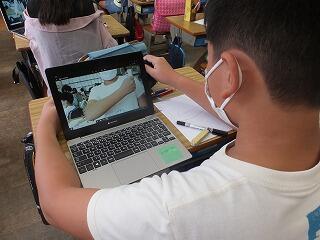 教室では、担任から夏休みのお手紙や宿題が配られたり、1学期のふりかえりをしたりしていました。