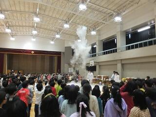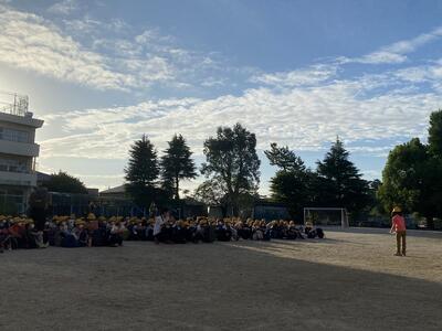 久しぶりに全校児童で校歌を歌ったり、校長先生のお話を聞いたりしました。