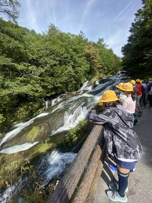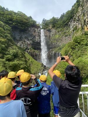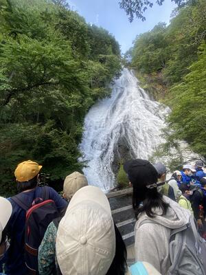 大きな水音と降り注ぐ水しぶき。華厳の滝の迫力に圧倒されました。