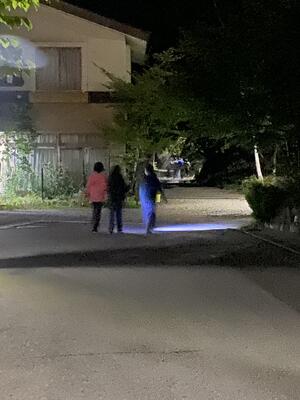 暗い中、湯ノ湖の源泉の周りをグループで散策しました。