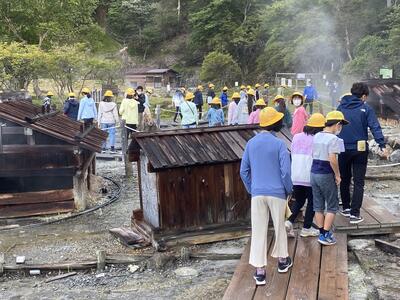 昨日ナイトハイクを行ったコースを散策しました。昨夜は、真っ暗で見えなかった源泉もしっかりと見学する事ができました。