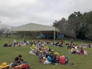 いも掘りの後は、グループで芝滑りやアスレチックなどを楽しみ、お待ちかねのお弁当タイムです。