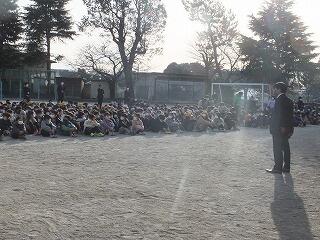始業式では、校長先生から「3学期はまとめの時期。ゴールに向けて頑張りましょう」というお話をしていただきました。コロナウィルスやインフルエンザが流行っていますが、健康に気を付けて頑張っていきましょう。