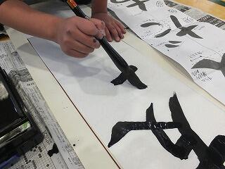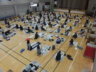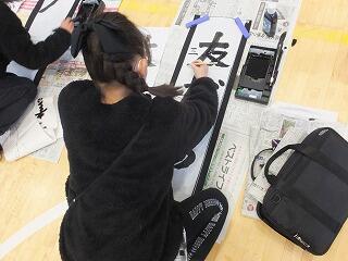 今日は、3年生が体育館で「友だち」を書きました。作品は、来週校内に展示をします。