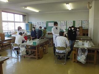 今日は、歯医者さんや保健センターから大勢の方々がいらっしゃって、5年生の「すこやか口腔検診」を行ってくださいました。すこやか口腔検診では、唾液検査、歯並び検査、味覚検査などを行い、口の中の健康について子どもたちにも考え、実践していってもらうためのものです。