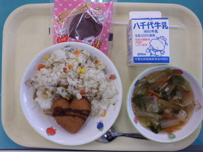給食では、いつも好き嫌いなくたくさん食べる中山小のみなさんに♥ハートづくしの給食で、感謝の気持ちをおくります。