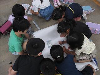 今日は、3年生の学年活動で「全力アート」に挑戦していました。クラスごとに原画を考え、全員で協力して一枚の絵を完成させます。みんなが楽しく、協力して素敵な思い出を作る活動です。完成したら、廊下に飾られるそうです。どんな共同作品ができるか楽しみです。