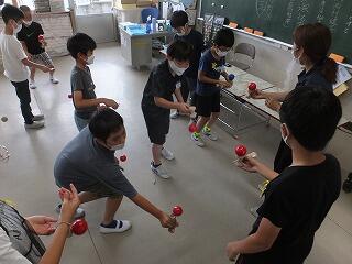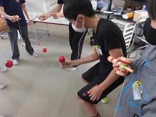 昔遊びクラブではけん玉をしていました。6年生は、難しい技も披露してみんなから「すごい」と言われていました。