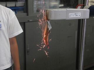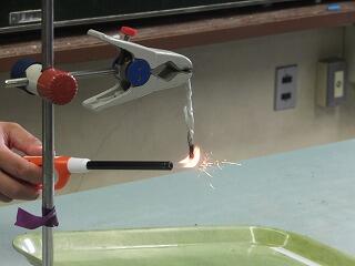科学クラブでは、鉄粉を燃やしたらどうなるかの実験をしていました。きれいな火花が出ると「おぉ!」という声が挙がっていました。