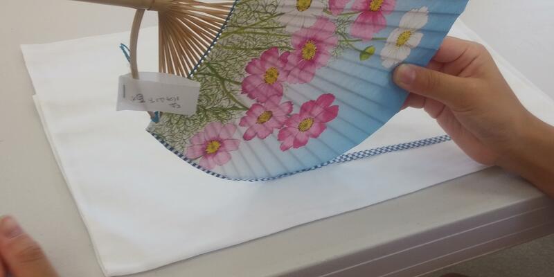 クラスに分かれて民宿に向かい団扇づくり体験を始めました。