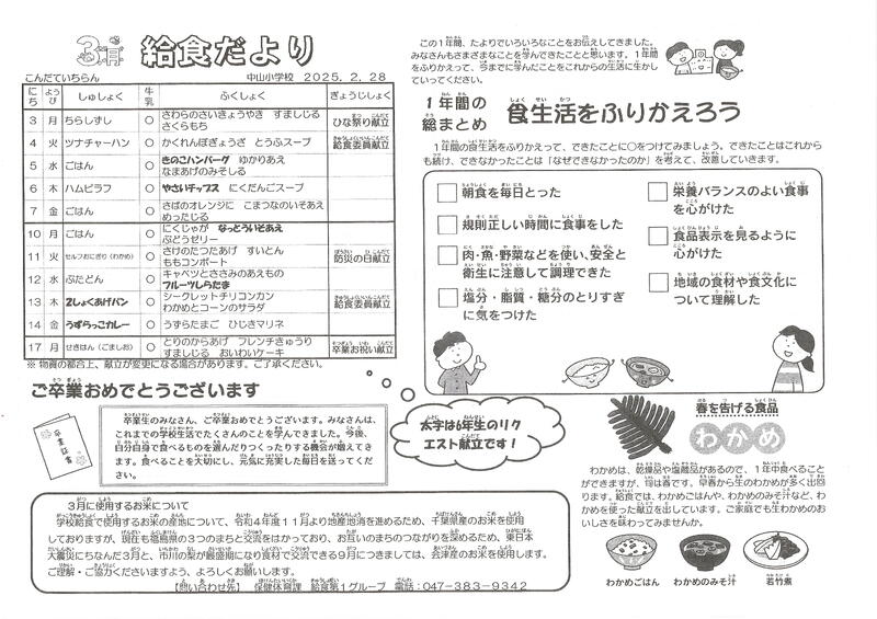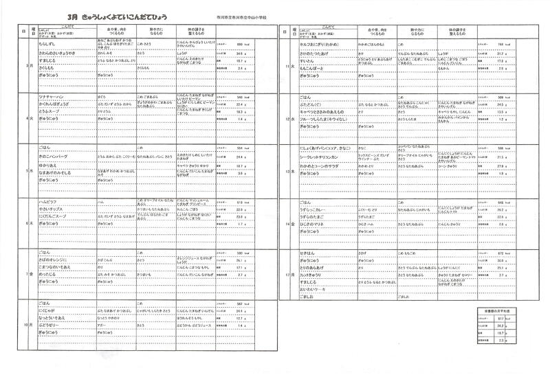 2025年3月の記事一覧 2025年3月 全ての記事 アーカイブ 2025年12月 (0) 2025年11月 (0) 2025年10月 (0) 2025年9月 (0) 2025年8月 (0) 2025年7月 (0) 2025年6月 (0) 2025年5月 (0) 2025年4月 (0) 2025年3月 (1) 2025年2月 (1) 2025年1月 (1) 2024年12月 (1) 2024年11月 (0) 2024年10月 (2) 2024年9月 (2) 2024年8月 (0) 2024年7月 (0) 2024年6月 (1) 2024年5月 (1) 2024年4月 (1) 10件 1件 5件 10件 20件 50件 100件 3月のこんだてひょう 投稿日時 : 03/03 中山小学校管理者