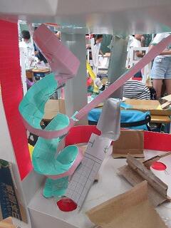 5年生が、図画工作の時間にビー玉を転がす道を作る「転がる君の旅」を作成しました。