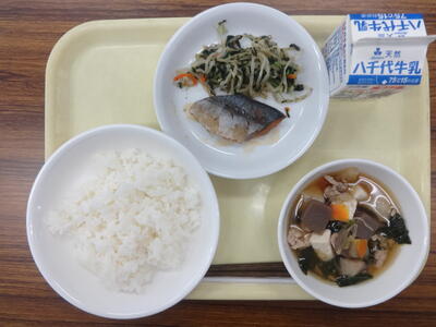 今日の献立は、わかめご飯、白身魚のゆずみそ焼き、ごま和え、かぼちゃの味噌汁、牛乳です。