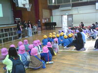 子供たちは消防署員の方のお話を聞きながら、実際に火事や地震が起きたときどう行動したらよいか確認していました。とても貴重な機会となりました。