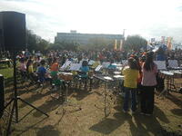行徳ハロウィンの駅前公園のステージに、新浜小学校の吹奏楽部が参加しました。部員の子ども達はそれぞれ、ちょっとした仮装をしての参加で、4曲を楽しく演奏することができました。また、最後のマツケンサンバでは、顧問の先生とダンス隊が曲に合わせて踊り、多くの観客からたくさんの拍手をいただきました。