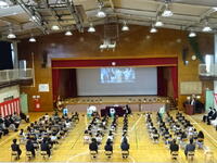 晴天の中、入学式が行われました。今年の新入生は、例年より少ない98名でスタートです。みんな行儀よく入学式に参加することができました。私からは、「元気に登校して、元気におうちに帰ってほしい」というお願いをしいました。2年生から動画での「かんげいの言葉」もあり、新入生の皆さんも興味深そうにみてくれました。早く学校慣れて、楽しい学校生活を送ってほしいです。