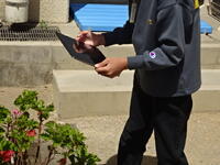 行徳警察署の方を招いて不審者対応訓練をしました。子ども達は、不審者が侵入すると教室の真ん中に集まり静かに隠れる練習をしました。また、教職員は不審者への対応、もしもの場合の取り押さえ方などの訓練をしました。今後も、日頃から不審者対応への意識を高めていきたいと思います。