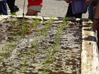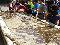 5年生が、「緑のみずがき隊」の方を招いて、田植えを実施しました。始めに田植えの方法の説明を受けてから、一人ずつ苗を植えていきました。都会の中にある新浜小学校ですが、少しですが田植えができたことは貴重な体験だと思います。この後水の管理をしながら成長を見守っていきます。これからも楽しみですね。