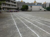今日の放課後、先生方で校庭に運動会のためのラインを引きました。目印の杭を打ちなおして、コースを作っていきました。いよいよ明日から運動会練習が始まります。運動会の練習を通して、みんなが体を動かすことが少しっでも好きになるように、職員一同取り組んでいきます。