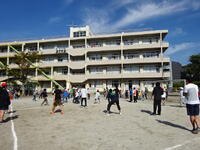 3年生以上の学級学級対抗によるドッジボール大会が行われてきましたが、21日には高学年の優勝学級の6年2組と先生方の試合が行われました。結果は先生チームの勝利でしたが、子ども達も先生方も笑顔いっぱいの試合になりました。