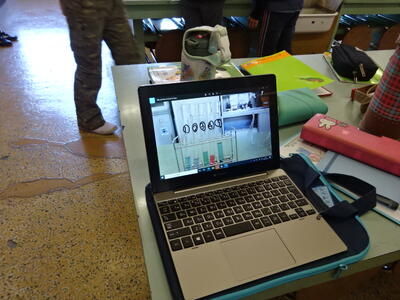 6年生の理科の実験でタブレットを活用した授業に取り組みました。実験結果をタブレットで撮影し,オクリンクというソフトを使ってみんなで共有しました。結果の記録などでもタブレットの活用は有効と考えています。