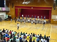 運動会の練習が始まっています。今日は、あいにくの雨でしたが、6年生は「ソーラン節」の練習を体育館で行いました。見本の先生が汗だくになって踊っている姿を、静かにじっくりと見て踊り方を覚えている6年生の姿が印象的でした。これから、どんな踊りになるのか楽しみです。